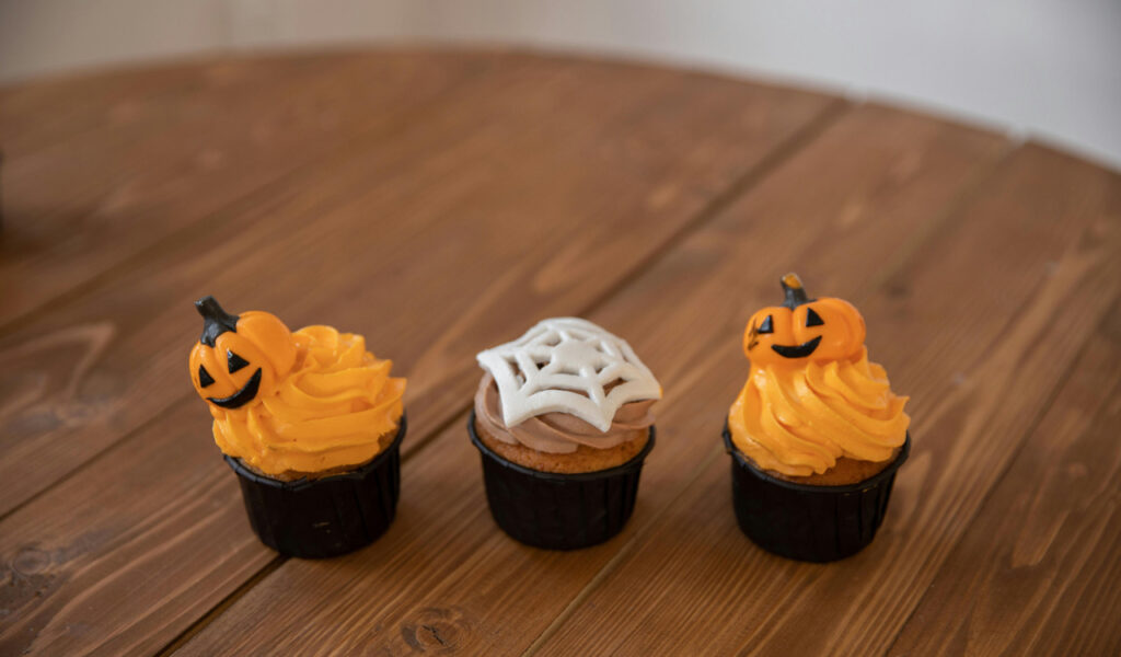 Chocolate cupcakes are a good place to start. Next, decorate the top with a spider web motif using white icing. For a creepy-crawly look, add a little plastic or gummy spider on top of the web as a finishing touch. This eerie treat, which blends the sweetness of cupcakes with the excitement of Halloween, is sure to delight kids.