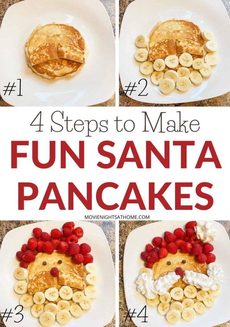 We love this Santa pancakes for a fun Christmas breakfast idea — whether it’s Christmas morning or leading up to the big day!