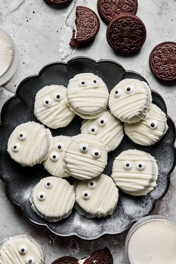 Take your Halloween movie night to the next level with these amazing and delicious snack ideas! These Halloween meatballs are a spooky twist on a party favorite—savory, bite-sized, and perfect for serving at any Halloween gathering. Dress them up with fun toppings or toothpick “eyeballs” for a festive, creepy-cute touch! If you're looking for a hearty snack, these spooky Air Fryer Mummy Hot Dogs are a frightfully perfect. They're easy to make and kid-friendly! These witch hat cookies are super easy to make and perfect for a Halloween movie night snack! These Oreo Mummy Cookies are the ultimate no-bake Halloween treat! They’re fun, festive, and so easy to make. Chocolatey Oreos get dipped in smooth white chocolate, then drizzled to look like mummy bandages and finished off with candy eyes for a spooky touch. These Ghost Cookies are so adorable and combine spooky and sweet! Spooky but cute Rice Krispie treats decorated to look like spiders. These are great for making with kids and there's no baking required. These easy Halloween Cupcakes have a fun surprise inside: orange-flavored stripes! Topped with delicious buttercream frosting and sprinkles, they're always a favorite holiday dessert. These chocolate skeleton cookies are as cute as they are delicious! Bake a giant pumpkin Pop Tart in a sheet pan! This family-size treat is filled with pumpkin, topped with glaze, and decorated for Halloween fun! These adorable Spider Pretzels are a fun and festive way to add a little spooky magic to any Halloween celebration. Plus, they’re a healthier alternative to traditional sugar-packed treats—perfect for kids and adults alike! This Halloween Trail Mix Recipe has the perfect combination between salty and sweet. It’s a super easy recipe, perfect for halloween parties or halloween treats, with my all-time favorite halloween candy as the main ingredient. This Halloween Puppy Chow combines Chex cereal, chocolate chips, and peanut butter for a delicious snack mix during a movie! These spooky Halloween pizzas are another great and satisfying Halloween movie night option! This Halloween monster mix is perfect to munch on while you watch something silly or spooky! Looking for something cute and Halloween themed without being scary? These donuts are the perfect option! The colors also really pop on a party table, too! These sugar cookies are so yummy, and they're also fun to decorate together for a Halloween movie night! These spider cookies are the perfect blend of spooky and sweet for younger kids! These Monster Mouths are so cute and fun that kids won't even notice they're a healthier Halloween snack! These cute and easy no bake Halloween black cat cookies are perfect for a Hocus Pocus movie night, Halloween party, or classroom treat! Halloween Dirt Dessert Floats with Gummy Worms are the perfect dessert for a spooky season! We love them a Halloween party or get together! If you grew up with the Disney Channel, a Halloweentown movie night is a must-do! We love this Witch’s Brew purple hot chocolate to celebrate because it’s spooky and easy to make in the slow cooker! Whether it's a breakfast on Halloween morning, horror movie night with your friends, or a party, these easy cinnamon roll intestines are easy to whip up and serve! If you're curious on how to make a Halloween candy charcuterie board, it's actually easier than you think! Find out how in just 3 simple steps! These brownies are super easy to make and so fun to decorate! One of my favorite Halloween characters is Jack Skellington. Which makes these easy cookie pops a classic! Carve a Jack Skellington face into these Pizza Pot Pies and have a Nightmare Before Christmas watch party for Halloween dinner! this is a fun craft AND delicious meal in one. Whip up a batch of easy Halloween sugar cookies with a Tim Burton twist thanks to food coloring and chocolate stitches inspired by Sally's dress from The Nightmare Before Christmas This Monster Halloween Ice Cream is perfect for a spooky movie night! We fell in love with this simple 3 ingredient recipe while planning on Ghostbuster’s Movie Night because it reminds us the ghosts' slime! Casper the friendly ghost is just as sweet as these ghostly rice krispie treats! These super cute ghosts are actually chocolate covered strawberries!! They are delicious and a lower-calorie option than typical Halloween candy! These Frankenstein Rice Krispie Treats are an easy Halloween treat the kids will love. These cute Frankenstein Marshmallow Pops are an easy Halloween dessert recipe the kids will love and they make great Halloween party food! Channel your inner Hand from the Addam's Family with this quick and easy popcorn craft! Watching Beetlejuice this year? You have to try these delicious and perfectly theme popcorn balls! Check out this delicious Coco Inspired Popcorn recipe that’s the perfect addition to your movie watching experience! So many Halloween movies include a graveyard that this cheesecake dip can fit into many movie themes!! Looking for a treat for your next haunted Halloween movie night? This ghoulish Goosebumps popcorn is sure to be a hit with all your ghosts and goblins! This chocolate monster bark is perfect for celebrating a Goosebumps themed Halloween! While it may not technically be a movie, we had to throw in It's the Great Pumpkin, Charlie Brown snacks in our party as well! Take your movie night to a whole new world with our E.T movie night Reese's Pieces dessert! Our No Bake Chocolate Peanut Butter Fudge Bars are delicious and easy to make! These soft and chewy Triple Peanut Butter Cookies are packing a peanut butter triple-threat! Perfect for Fall or Halloween, or your E.T. themed movie night. It is just a little Hocus Pocus!!! These Hocus Pocus Spell Book Brownies are the perfect sweet treat for a Halloween party, or to enjoy at home with your favorite Sanderson “sistaaahhhhs”. This Hocus Pocus Hot Cocoa will put a spell on you with every sip. It combines milk, s