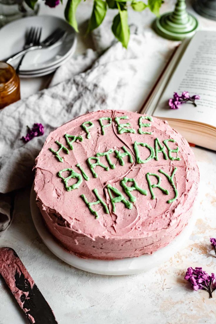 The ultimate vegan Harry Potter Birthday Cake for all witches and wizards! Ultra rich vegan chocolate cake layered with caramel and vegan frosting!