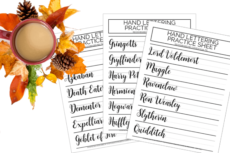 Practice your hand lettering skills with this free printable Harry Potter brush lettering worksheet. Wherever you’re just starting out or you’ve been lettering for years, these hand lettering sheets will help you improve your lettering skills AND allow yourself to unwind for a moment!
