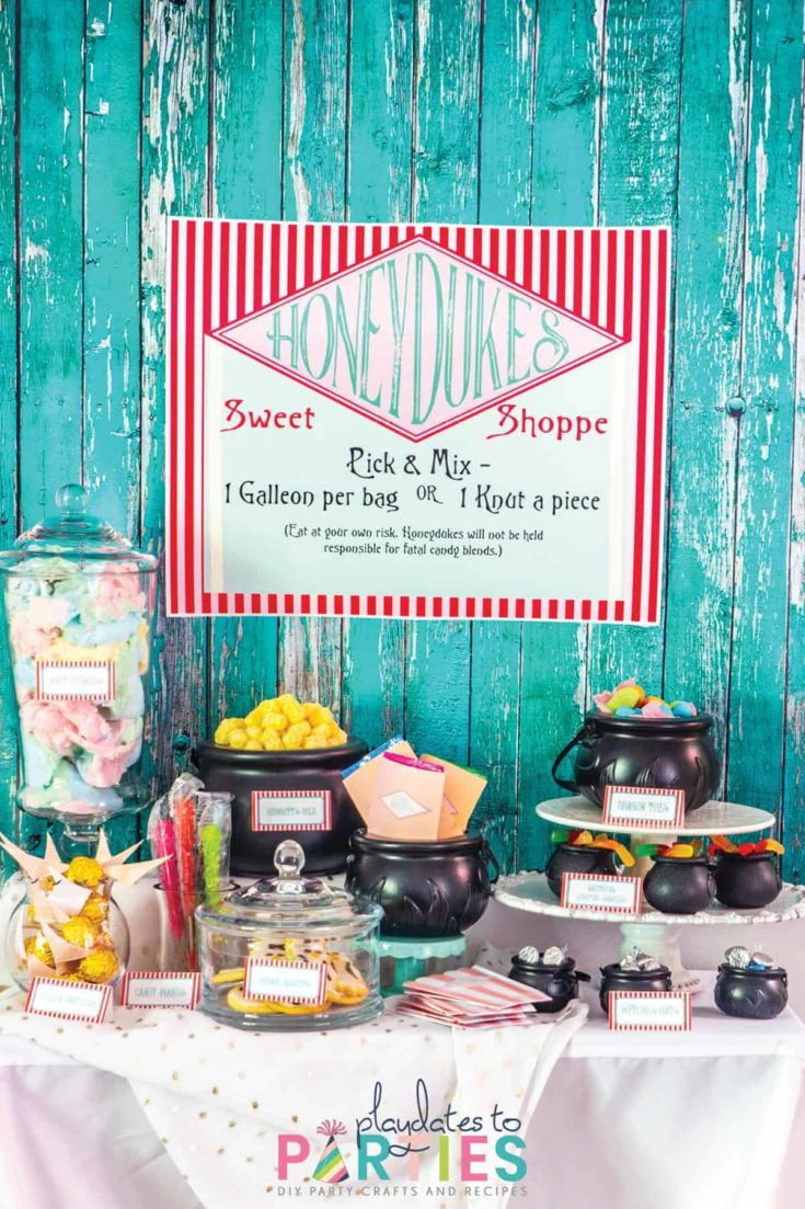 Looking for fun but easy DIY Harry Potter party ideas? This Harry Potter birthday party was pulled together in just one week...so you know you can make these decorations! This is the perfect party theme for kid of all ages. Check out the Harry Potter themed food at the Honeydukes candy buffet, the creative Harry Potter party decorations, and more!