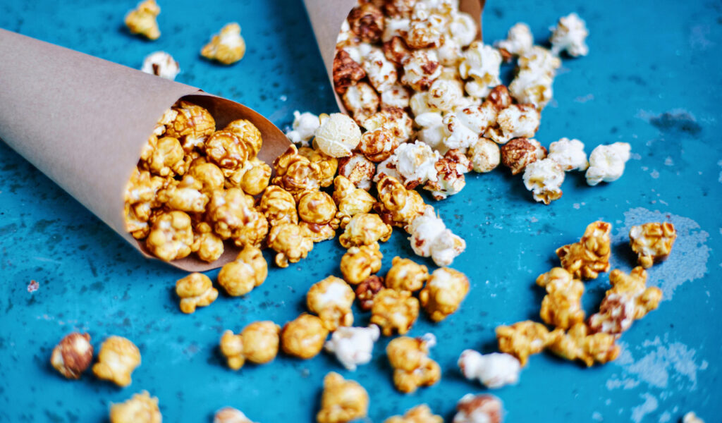 A nostalgic favorite, homemade caramel corn has a rich, buttery richness and a loud, gratifying crunch. Expert pastry chefs disclose that reaching the “secret” stage on the thermometer with your sugar and butter combination is the “hard crack” to a non-sticky caramel. A half-teaspoon of baking soda, according to experts, causes the boiling caramel to foam up, producing small air bubbles that give the coating a light, crisp texture instead of a tooth-breakingly hard one.