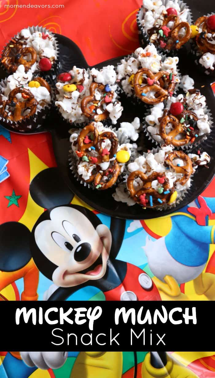 Mixing up a sweet and salty snack mix is a great idea for any party! And when you combine popcorn, pretzels and candy with Mickey Mouse sprinkles in this recipe for Mickey snack mix from Mom Endeavors, you have a delicious treat perfect for a party.