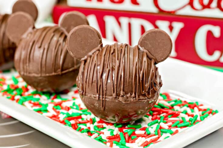 If decorating isn’t your strong suit, you might be looking for a simple recipe idea for your Mickey party menu. These hot chocolate bombs are easy to make by using round chocolate melts as Mickey ears. Just create the recipe from Simplistically Living and decorate with melted chocolate for a fun party treat your guests will love.